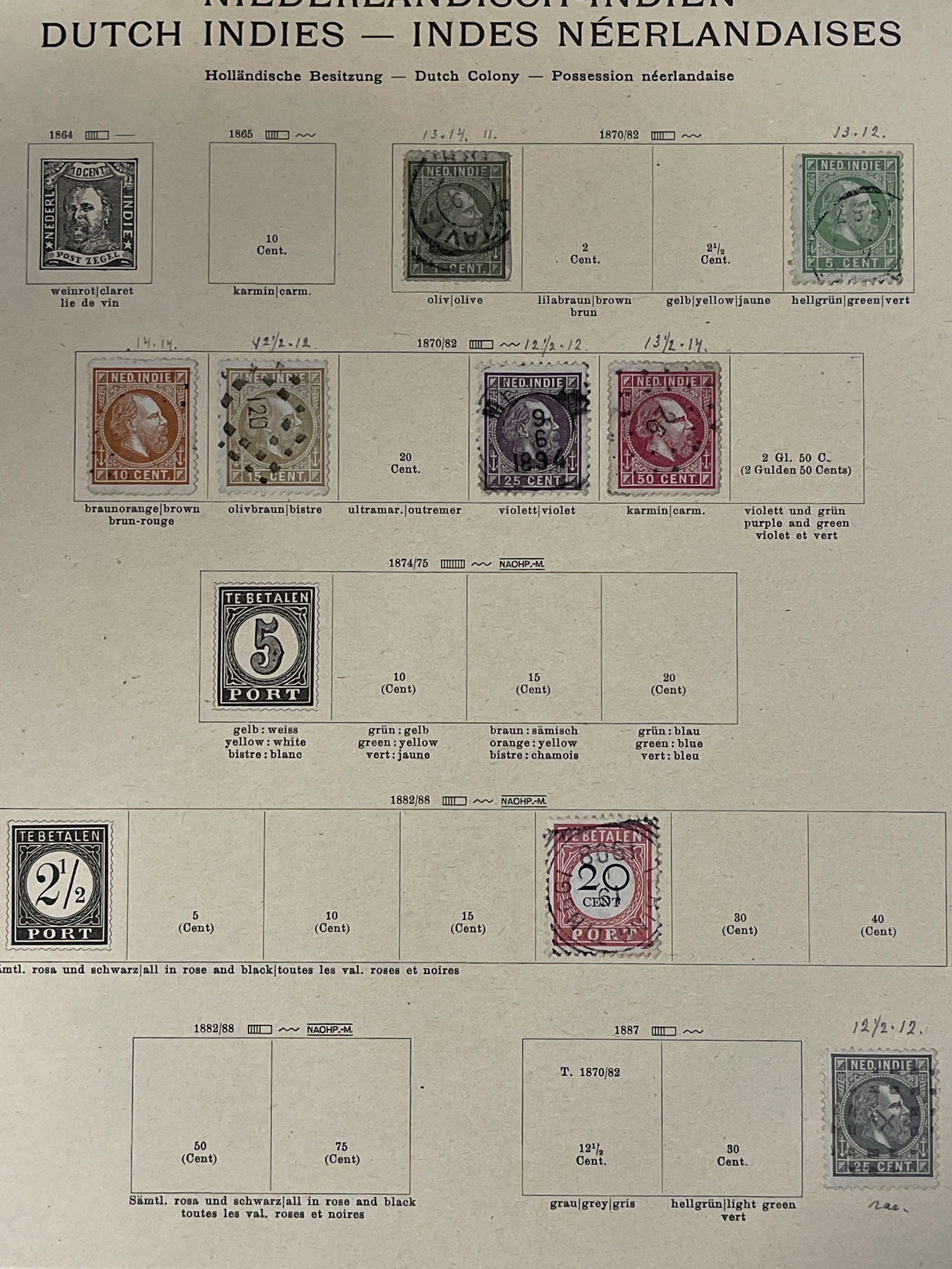 Netherlands. Collection used 1852–1930s on leaves with stamp mounts. Including colonies and some Luxemburg. Please see a selection of scans at www.philea.se. Somewhat mixed quality. (300+)