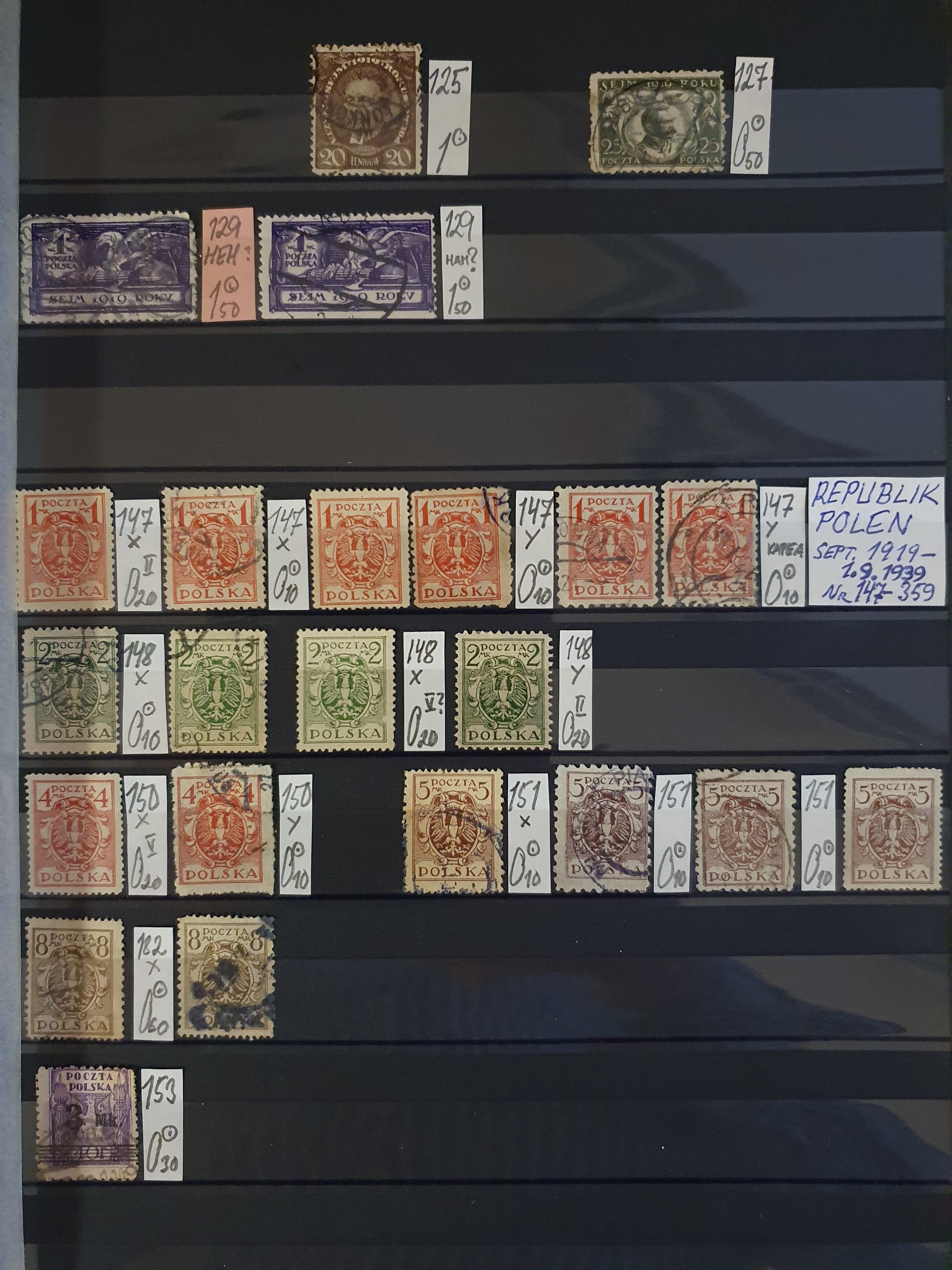 Poland. Collection/accumulation mostly used 1800s–1900s in box. A nice assembley of Polish stamps in two large stockbooks and a large speciell album. Also included are some stamps from Russia. Please see a selection of scans at www.philea.se. Good quality. Approx. 7 kg.