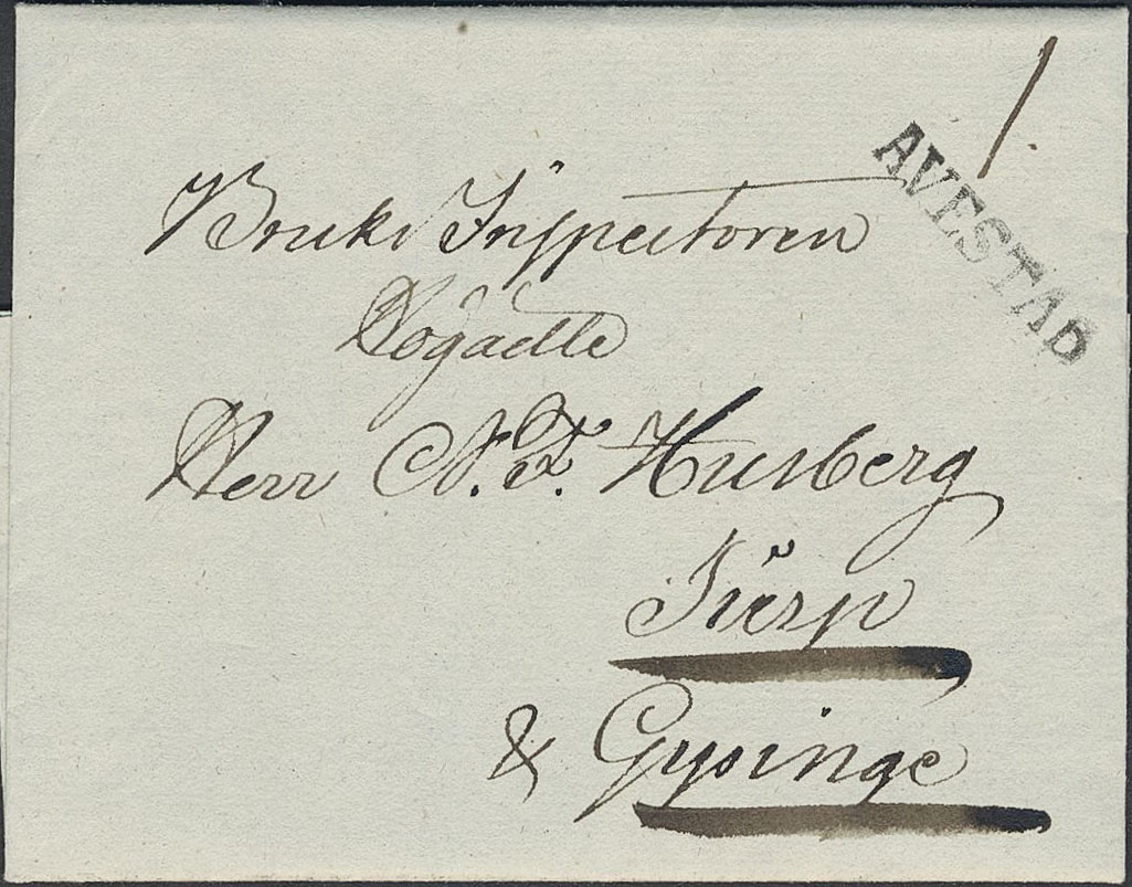 Sweden. W county. AVESTAD, straight postmark. Letter dated 'Horndahl den 28. april 1827', sent to Tierp. Superb. Postal: 2000:-