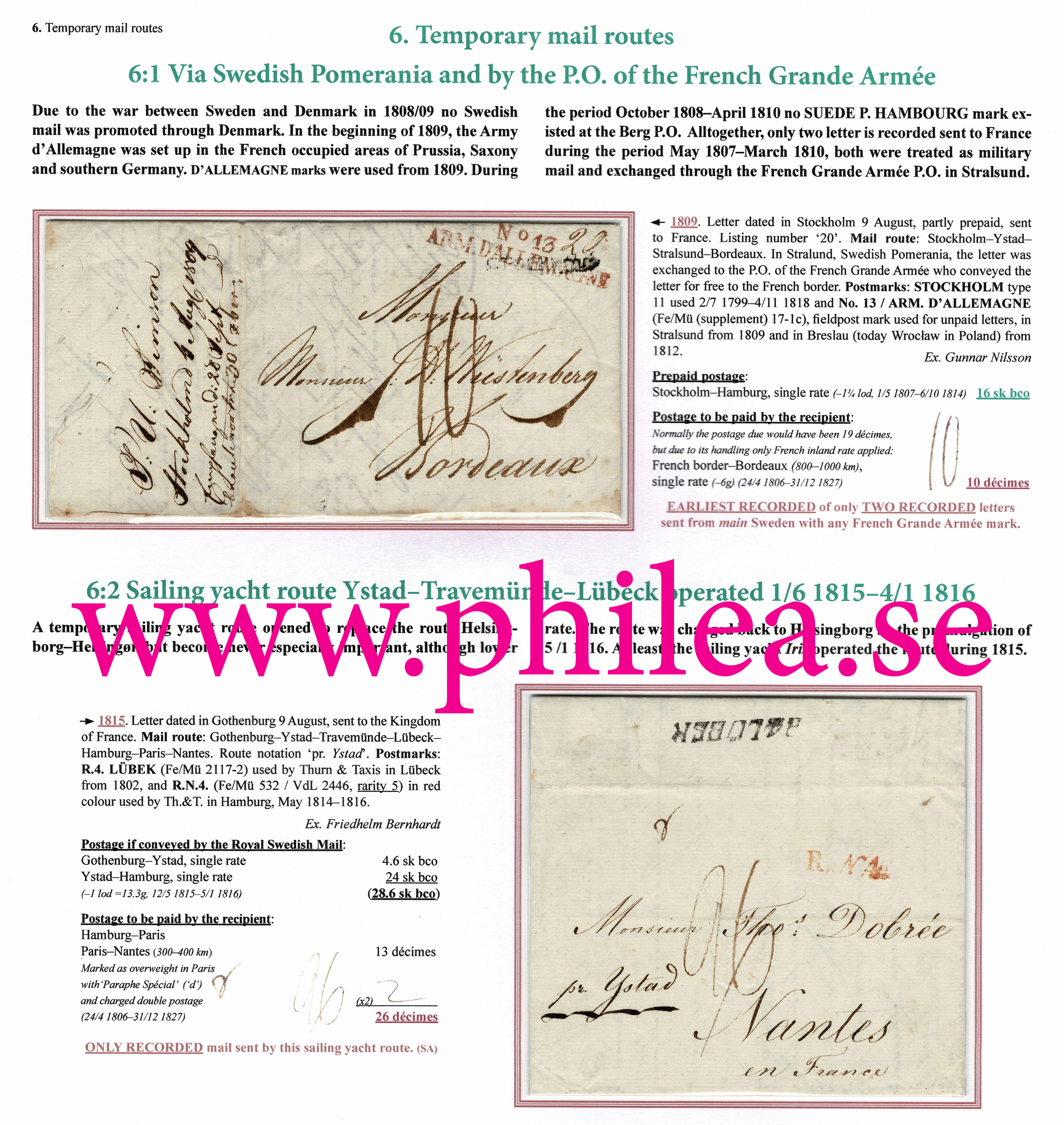 • The only recorded Swedish mail sent by the temporary sailing yacht route Ystad–Travemünde–Lübeck (1815)