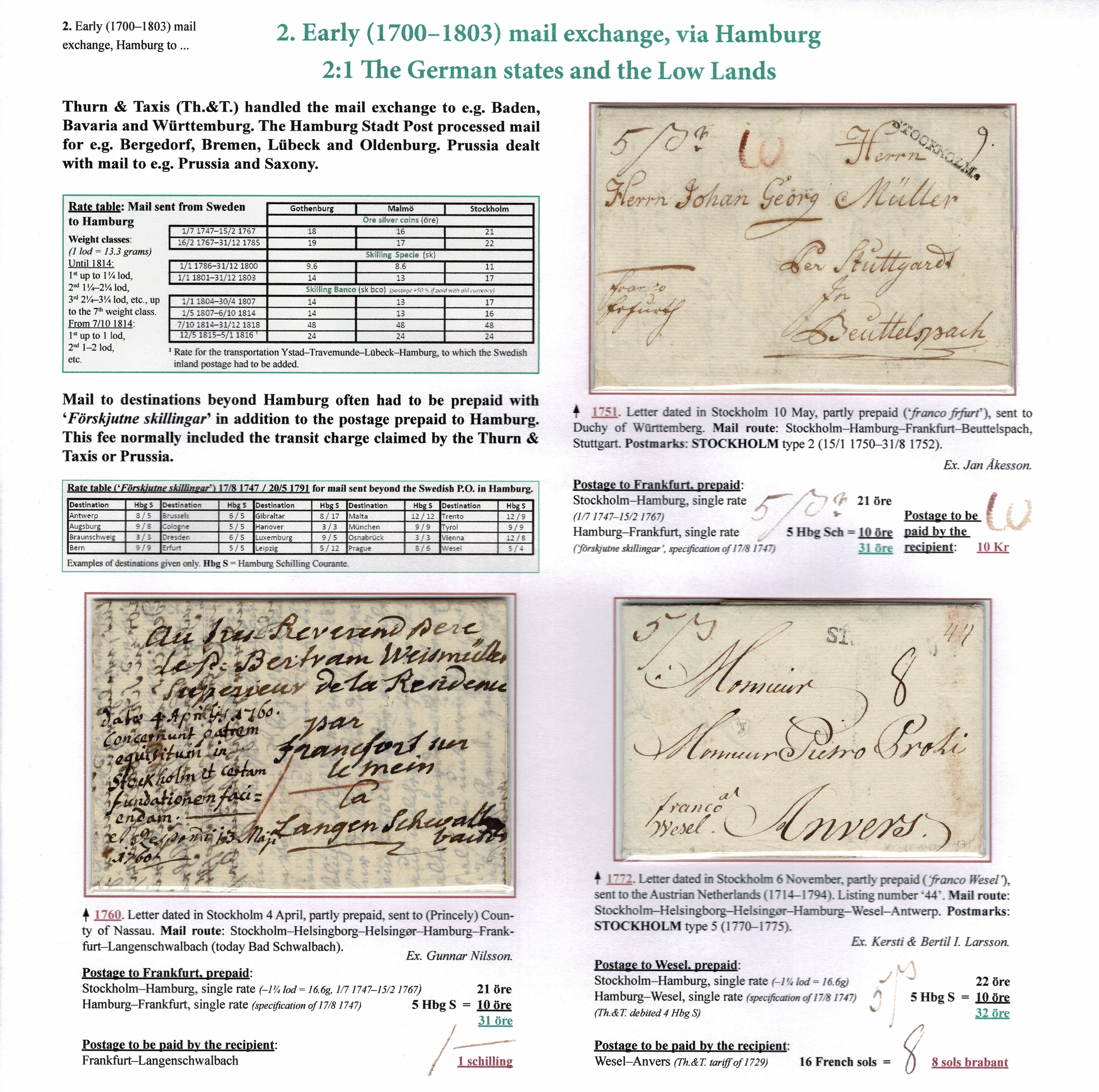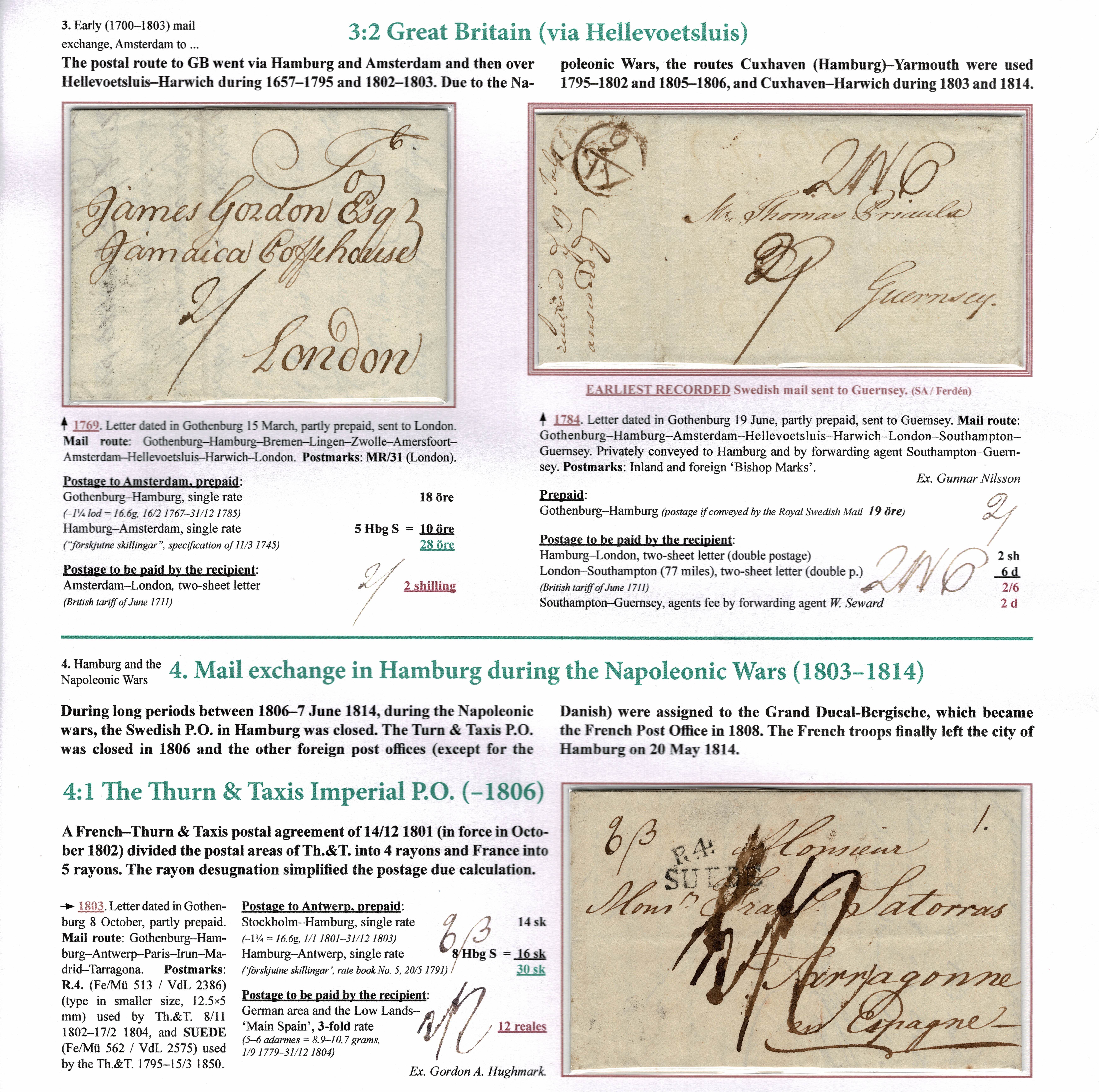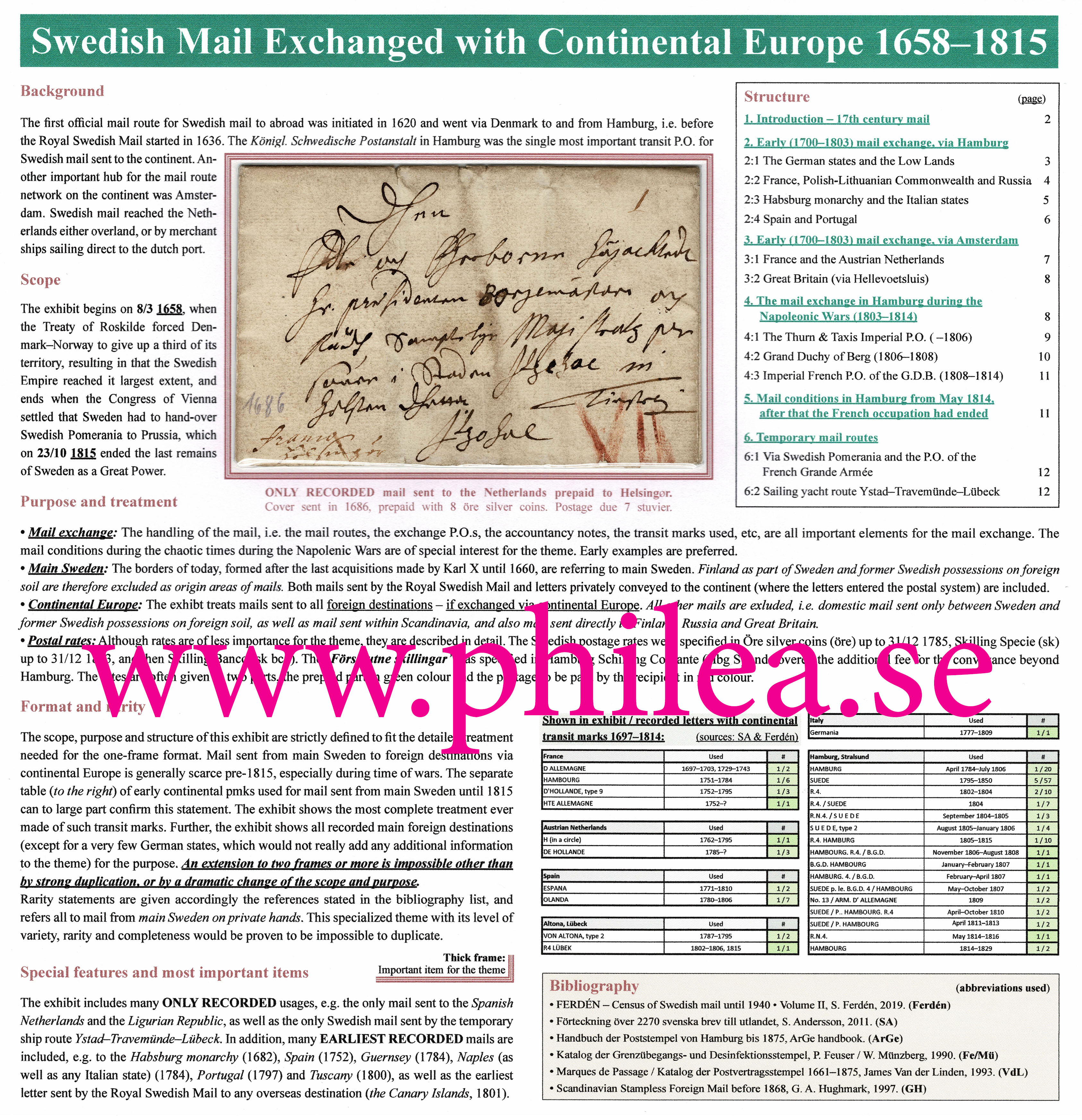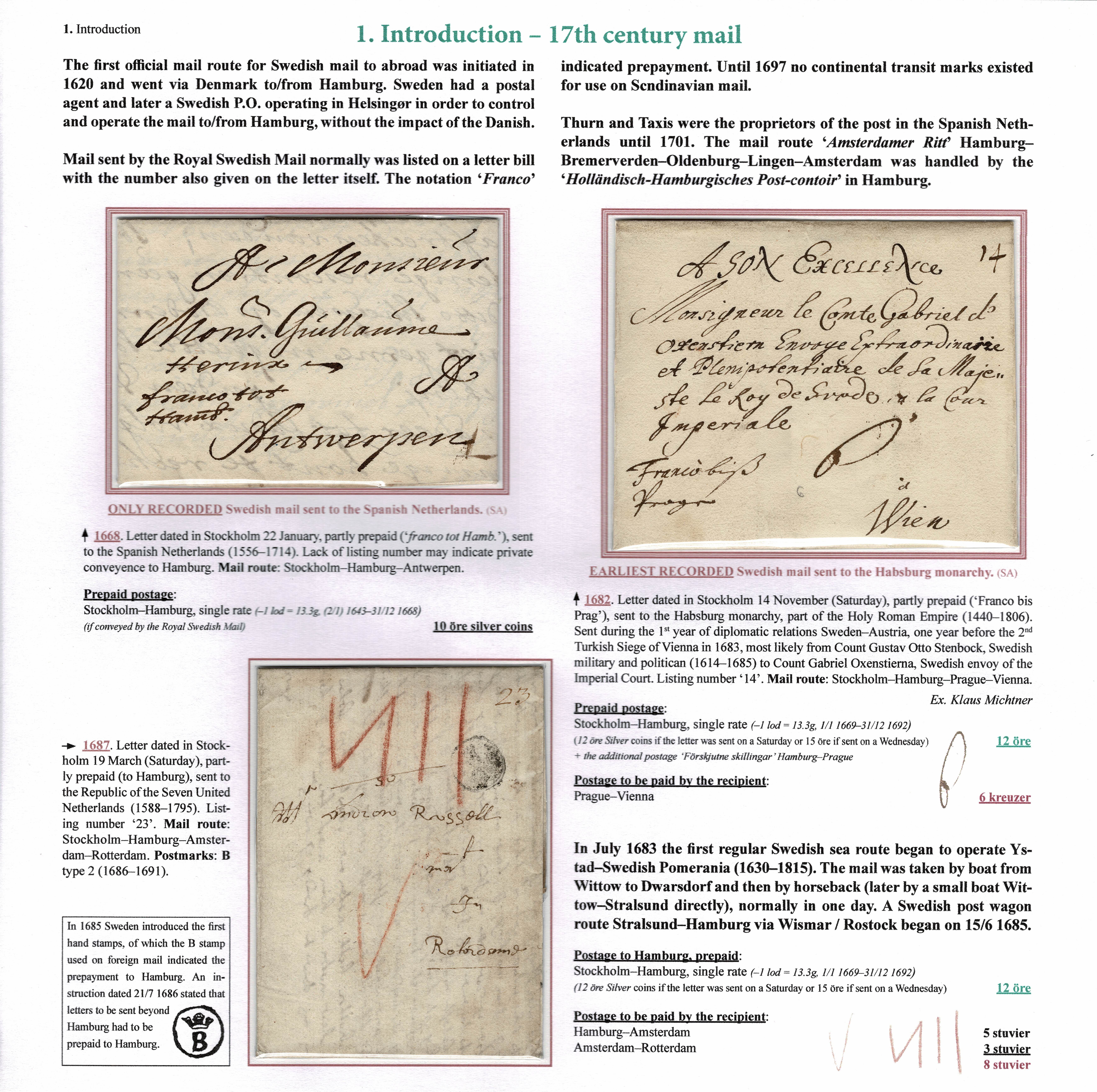 Sweden. Cover. 'Swedish Mail Exchanged with Continental Europe 1658–1815', one frame exhibit (twelve square format leaves), awarded 93p at THAILAND 2023.