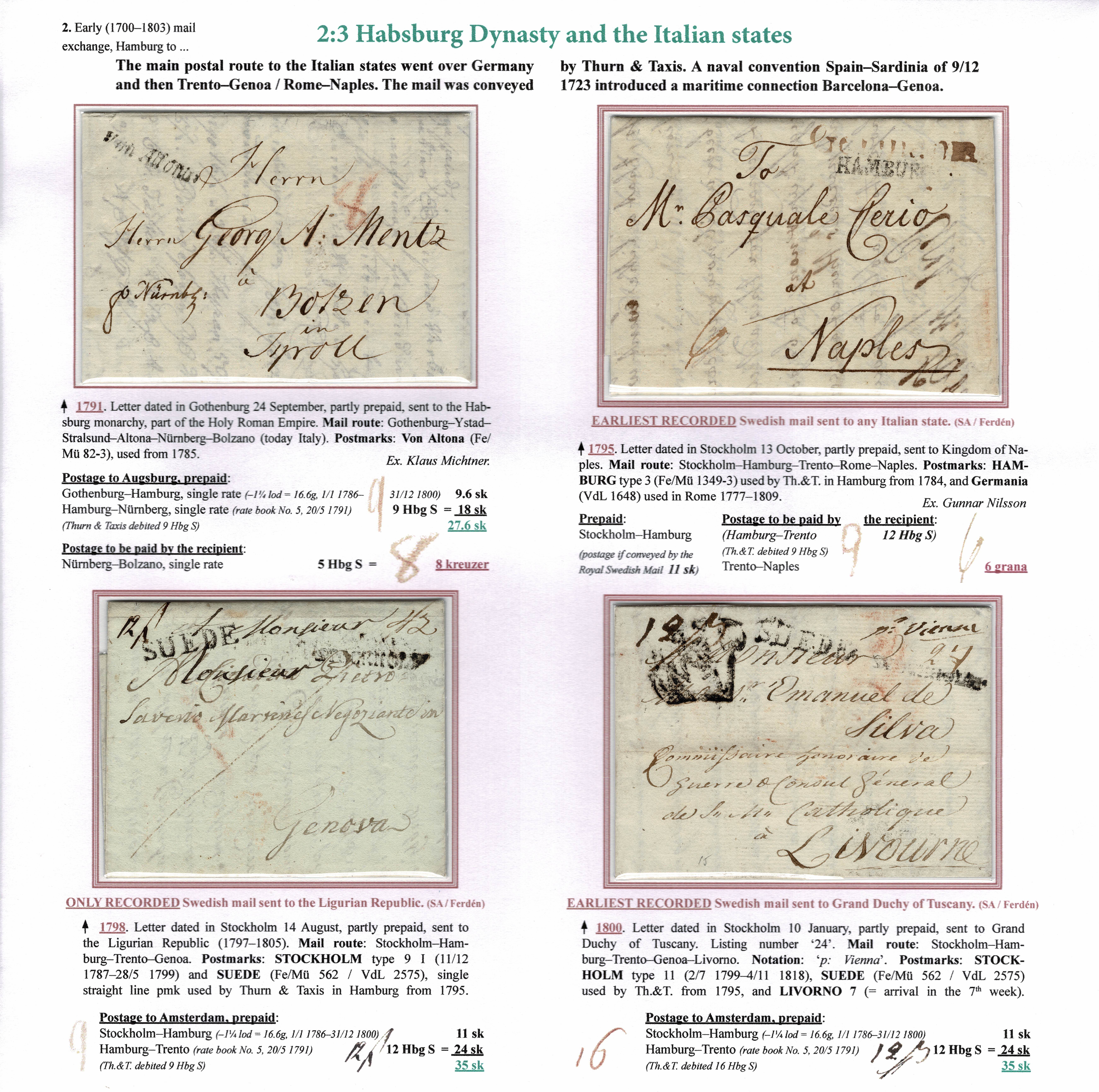 • The earliest recorded Swedish mail sent to Naples, as well as any Italian state (1784)