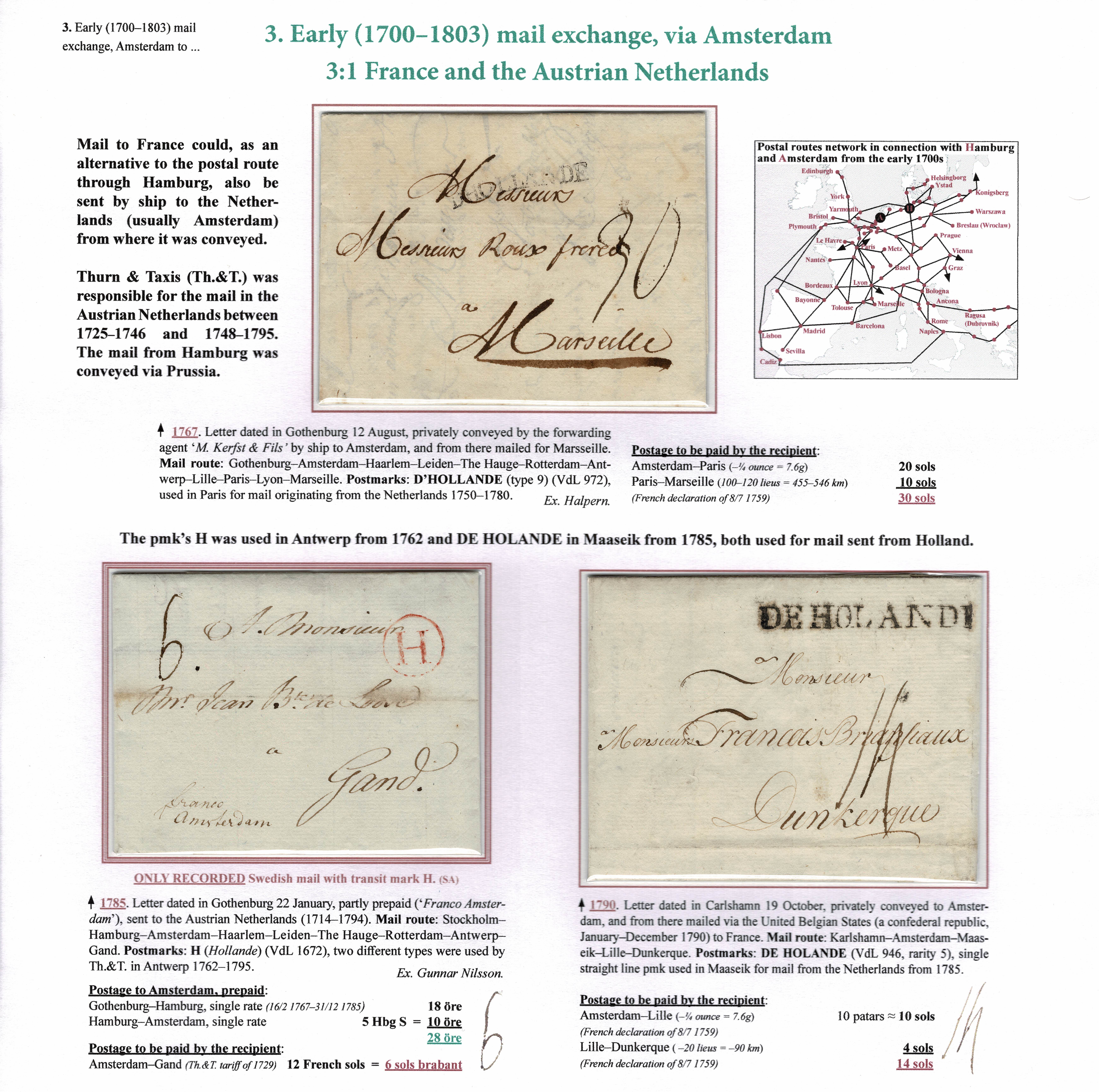 • Only recorded Swedish mail with transit mark H (Austrian Netherlands, 1785)