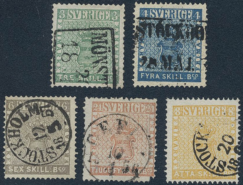Sweden. Facit 1–5 used, 3–24 skill bco. 3 and 24 skill bco def. and 4, 6 and 8 skill bco loocks nice, 6 skill sign BG.