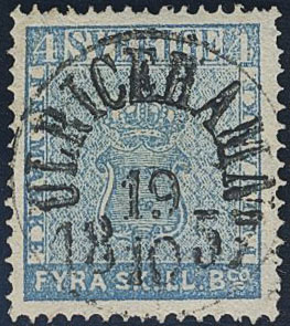 Sweden. Facit 2h1 used, 4 skill light blue, medium-thick paper, allegedly delivery (print) 9c1. EXCELLENT cancellation ULRICEHAMN 19.10.1857.
