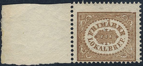 Sweden. Facit 13N2 ★★, 3 öre brown, reprint perf 13. With sheet margin. SEK 3000