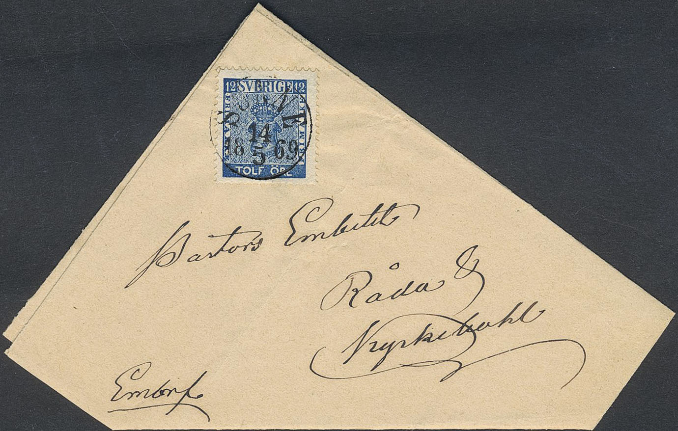 Sweden. Facit 9 on cover, 12 öre on 'tredjestånd'-folded letter sent from SUNNE to Råda. One folded corner perf, otherwise superb.