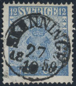 Sweden. Facit 9c1 used, 12 öre blue. Superb cancellation SKENNINGE 27.10.1859. Allegedly, position 49.
