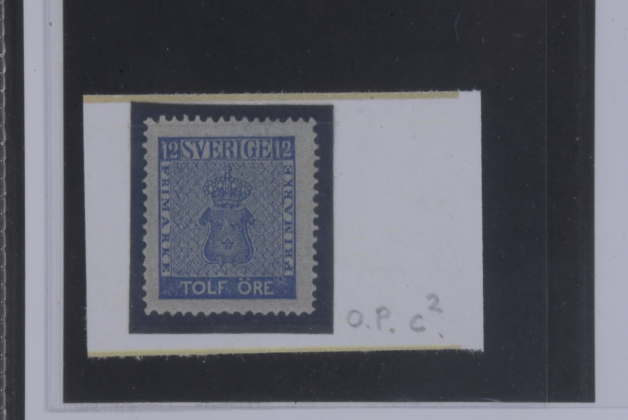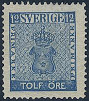 Sweden. Facit 9c2 ★, 12 öre blue. Slightly short perfs. Opinion (shade) by O.P. SEK 2000