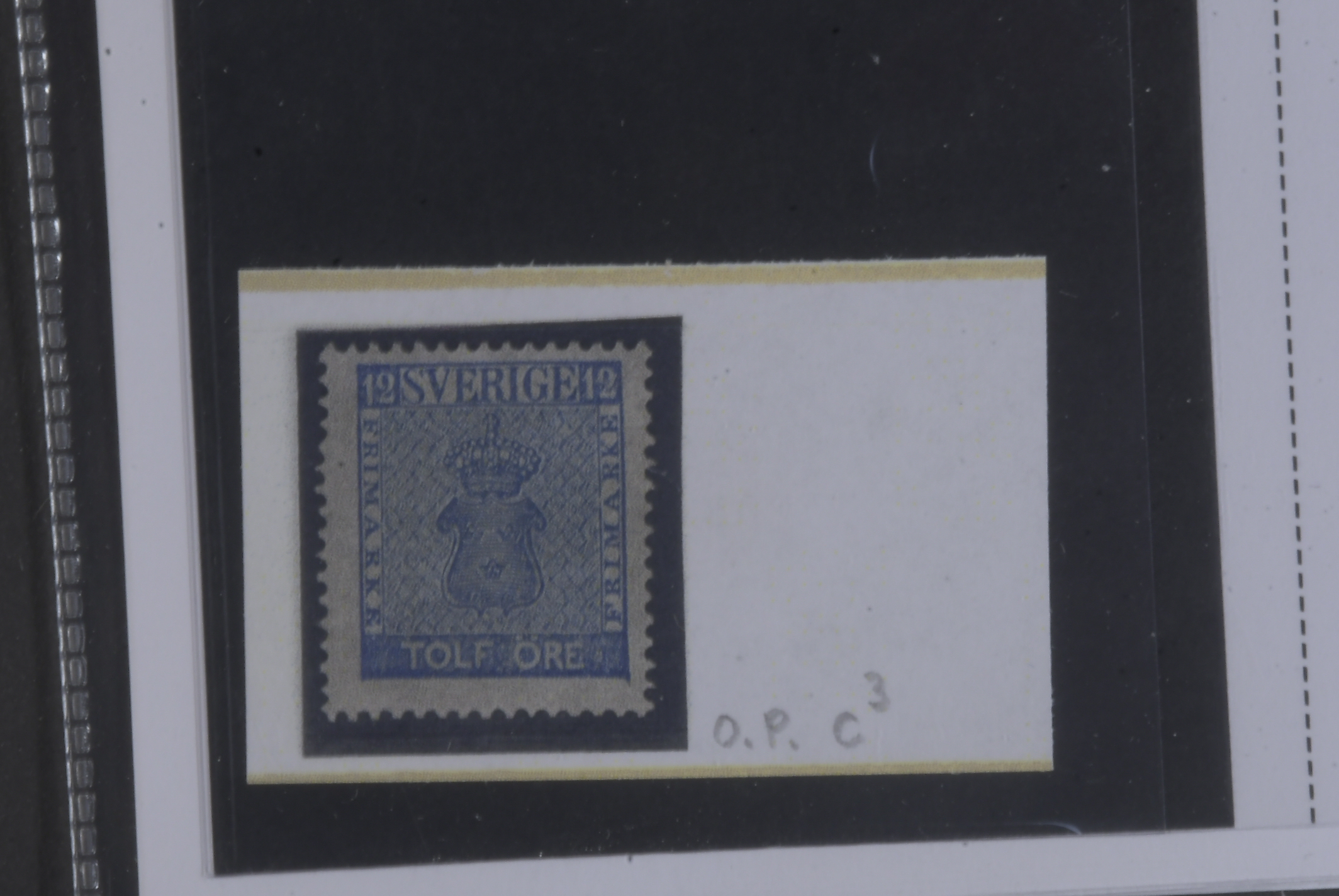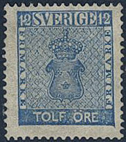 Sweden. Facit 9c3 ★, 12 öre blue, perforation of 1865. One bent corner perf. Opinion (shade) by O.P. SEK 1800