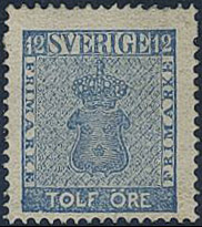 Sweden. Facit 9d3 ★, 12 öre light blue, perforation of 1865. Only small remainings of gum. Two double perfs. Ex. Sjöman. SEK 2000