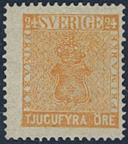 Sweden. Facit 10i1 ★, 24 öre reddish orange–yellow orange. Opinion (shade) by O.P. SEK 4000
