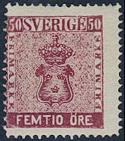 Sweden. Facit 12b (★), 50 öre violet-carmine. Rich colour. Regummed.