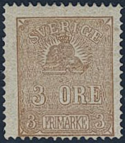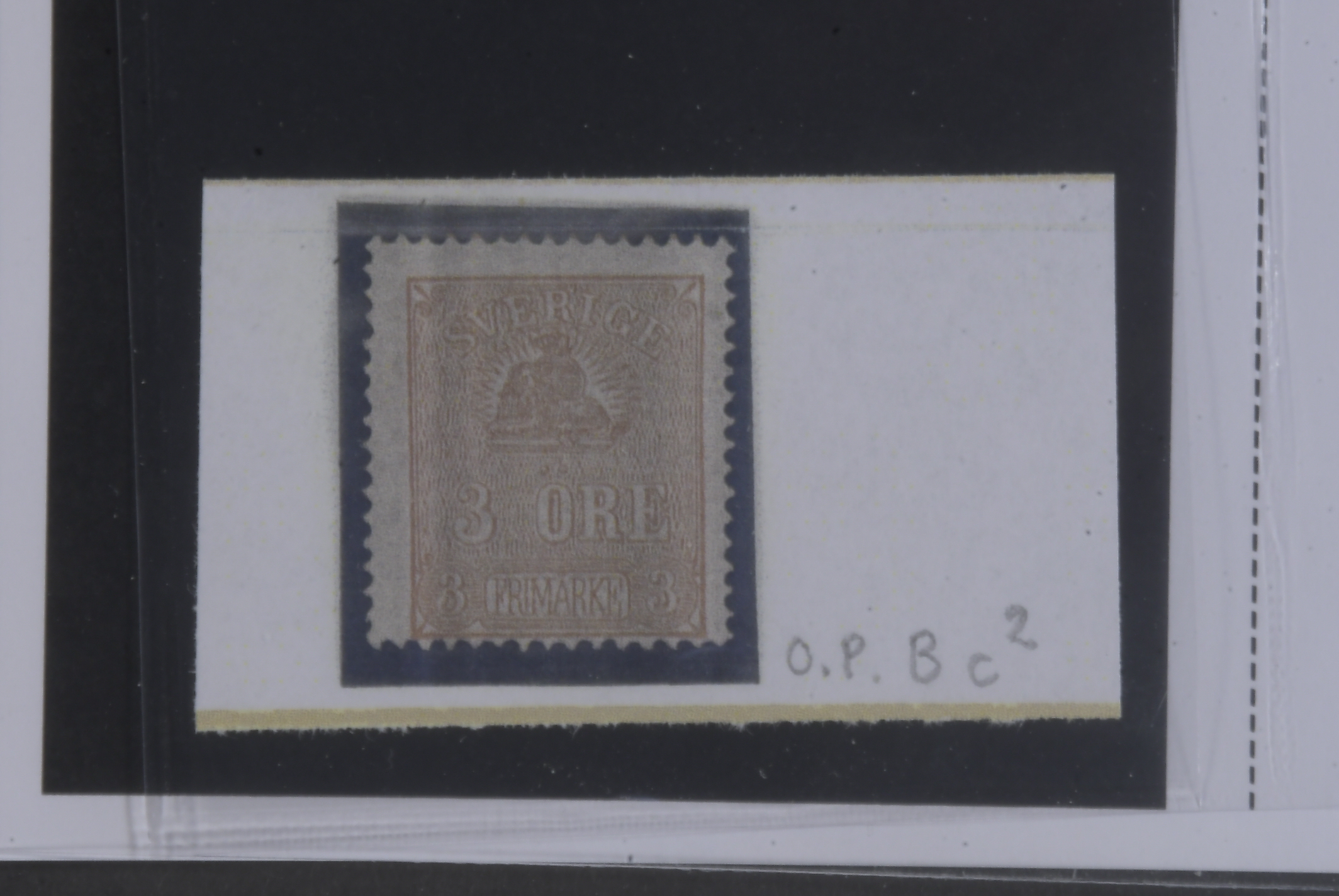 Sweden. Facit 14Bc2 ★, 3 öre brown, type II, perforation of 1865. Part of a second stamp at top. Opinion (shade) by O.P. SEK 3000