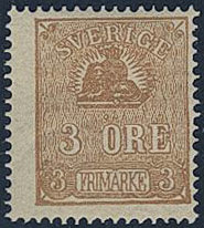 Sweden. Facit 14Bh ★, 3 öre greyish brown, type II. Fresh example with opinion (shade) by O.P. SEK 2200