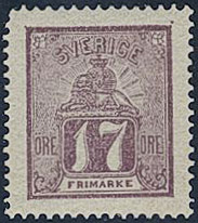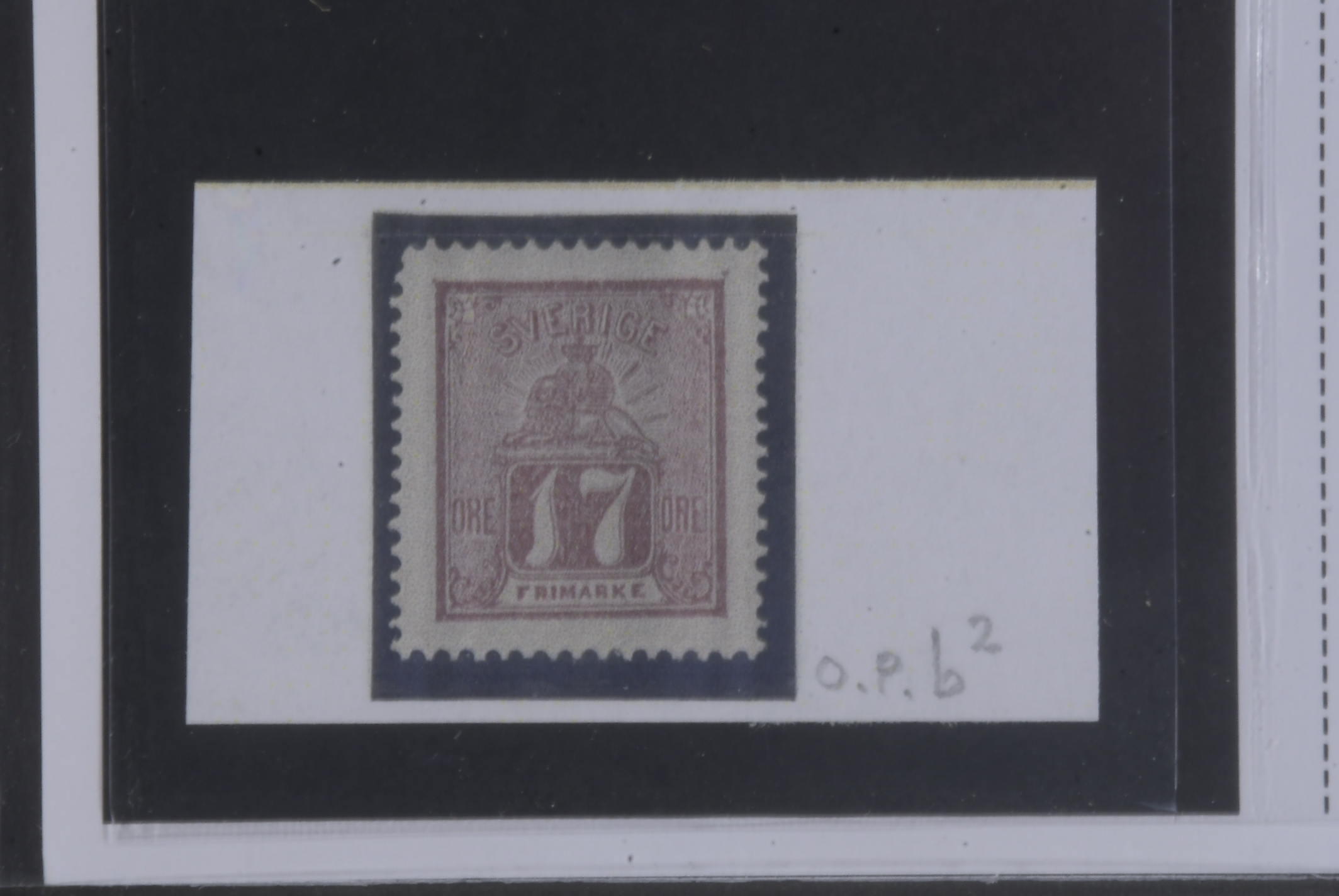 Sweden. Facit 15b2 ★, 17 öre reddish-bluish lilac, perforation of 1865. EXCELLENT centering. Slightly short corner perf. Opinion (shade) by O.P. SEK 6500