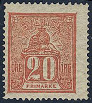 Sweden. Facit 16c ★, 20 öre orange-red. Scarce shade. Opinion (shade) by O.P. SEK 5000