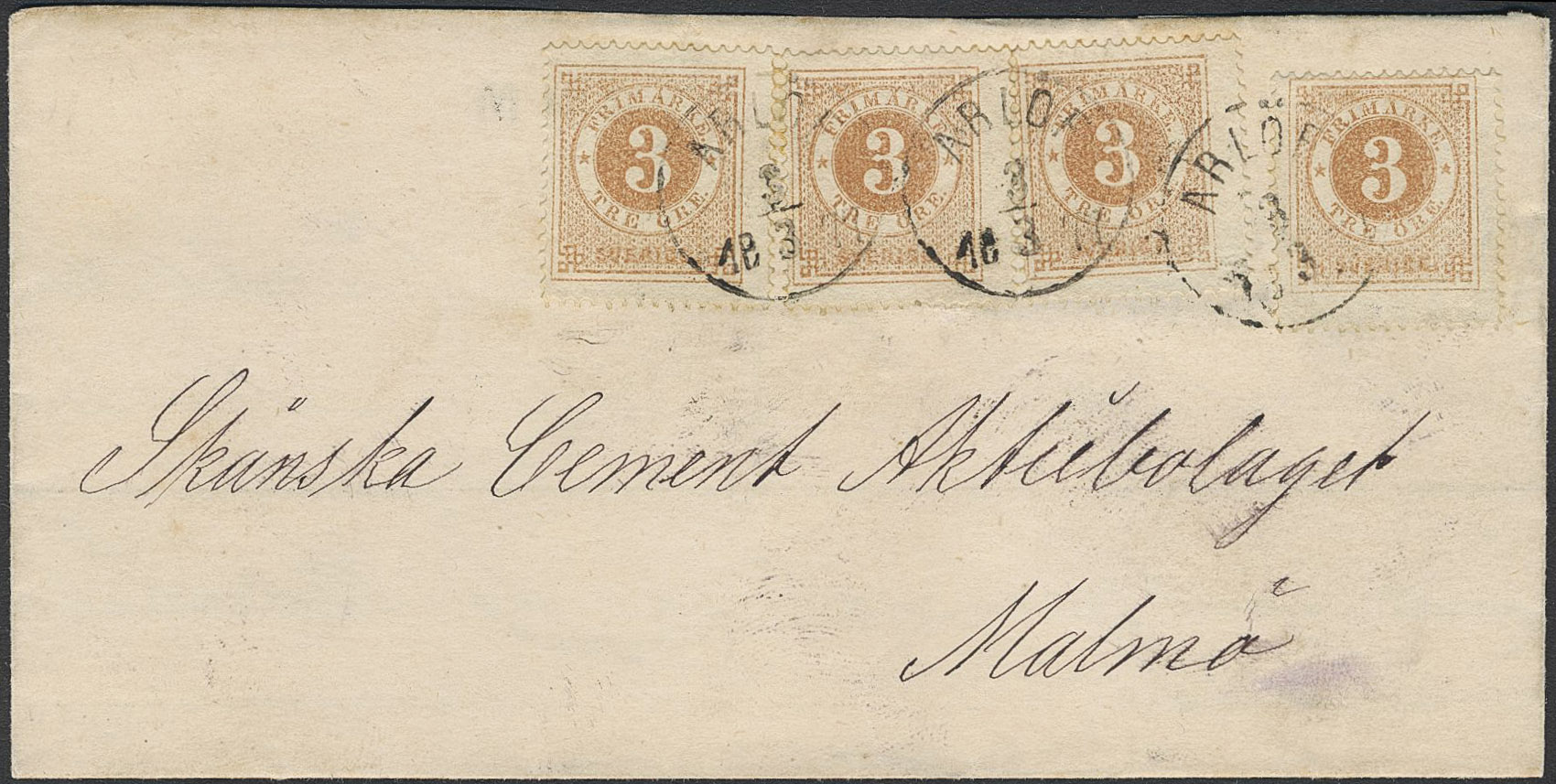 Sweden. Facit 17 on cover, 4×3 öre on cover sent from ARLÖF 3.3.1877 to MALMÖ 4.3.1877.