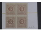 Sweden. Facit 17b ★★/★, 3 öre yellow-brown on smooth paper in block of four. Two stamps MNH. Opinion (shade) by O.P.
