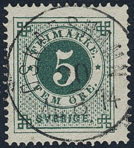 Sweden. Facit 19e used, 5 öre dark blue-green, smooth print. Superb cancellation OSKARSHAMN 20.8.1874. Signed by O.P.