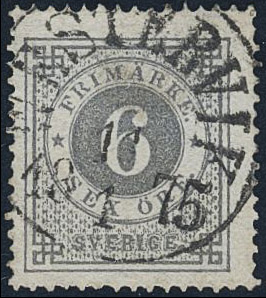 Sweden. Facit 20h used, 6 öre bluish grey. Superb cancellation WESTERVIK 11.1.1875. Small owner mark on the reverse. Scarce shade.