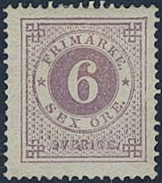 Sweden. Facit 20j ★, 6 öre lilac. Opinion (shade) by O.P. SEK 4000