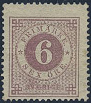 Sweden. Facit 20k ★, 6 öre red-lilac. Opinion (shade) by O.P. SEK 3500