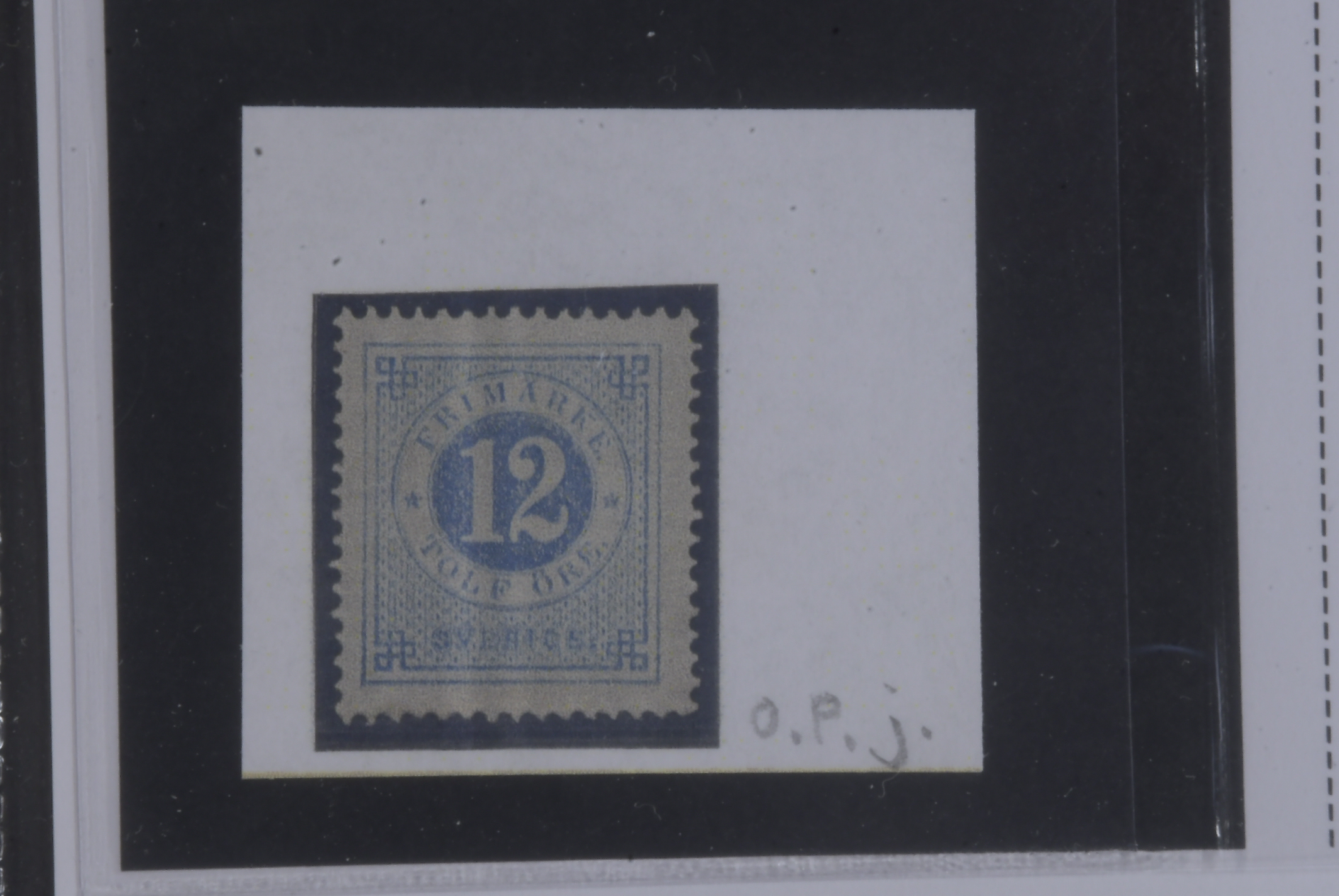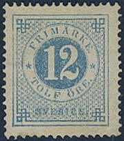 Sweden. Facit 21j ★, 12 öre pale blue. Superb centering. Opinion (shade) by O.P. SEK 2500