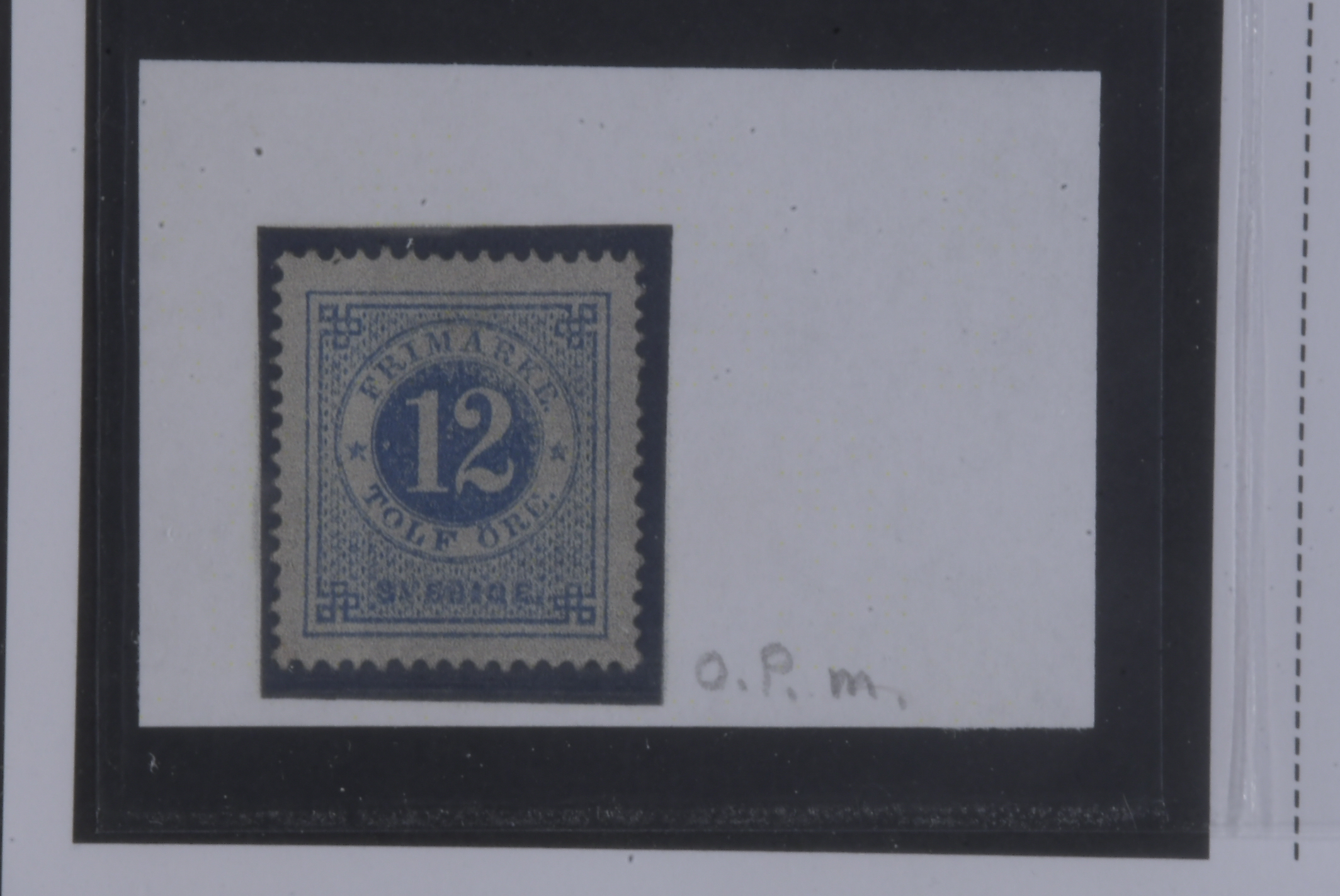 Sweden. Facit 21m ★, 12 öre blue. Superb centering. Opinion (shade) by O.P. SEK 2200