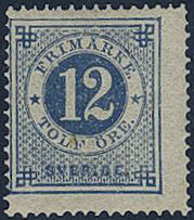 Sweden. Facit 21o ★, 12 öre ultramarinish deep blue, distinct print. Opinion (shade) by O.P. SEK 2500