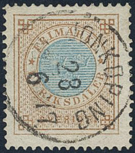 Sweden. Facit 27d used, 1 Riksdaler orange-brown/blue. Beautiful example cancelled JÖNKÖPING 23.6.1877.