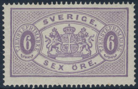 Sweden. Official Facit Tj4a ★, 6 öre reddish violet, perf 14. Opinion (shade) by O.P. SEK 2200