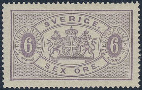 Sweden. Official Facit Tj4g ★, 6 öre deep lilac, perf 14, yellowish paper. Superb. Opinion (shade) by O.P. SEK 3300