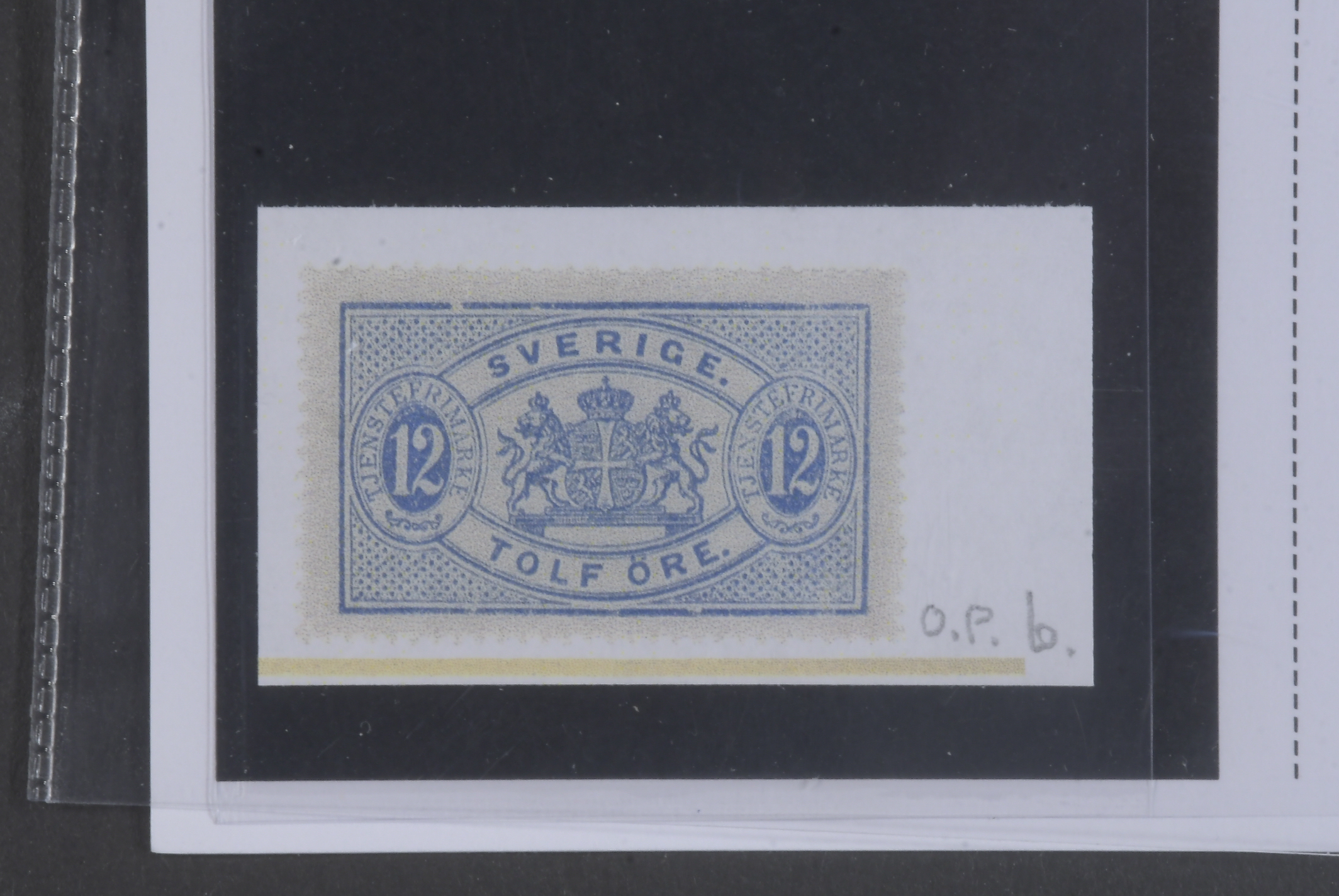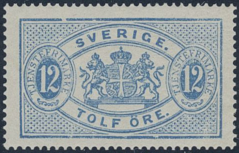 Sweden. Official Facit Tj5b ★, 12 öre high blue, perf 14, clear print, blue-greyish paper. Very fine–superb. Opinion (shade) by O.P. SEK 2000+