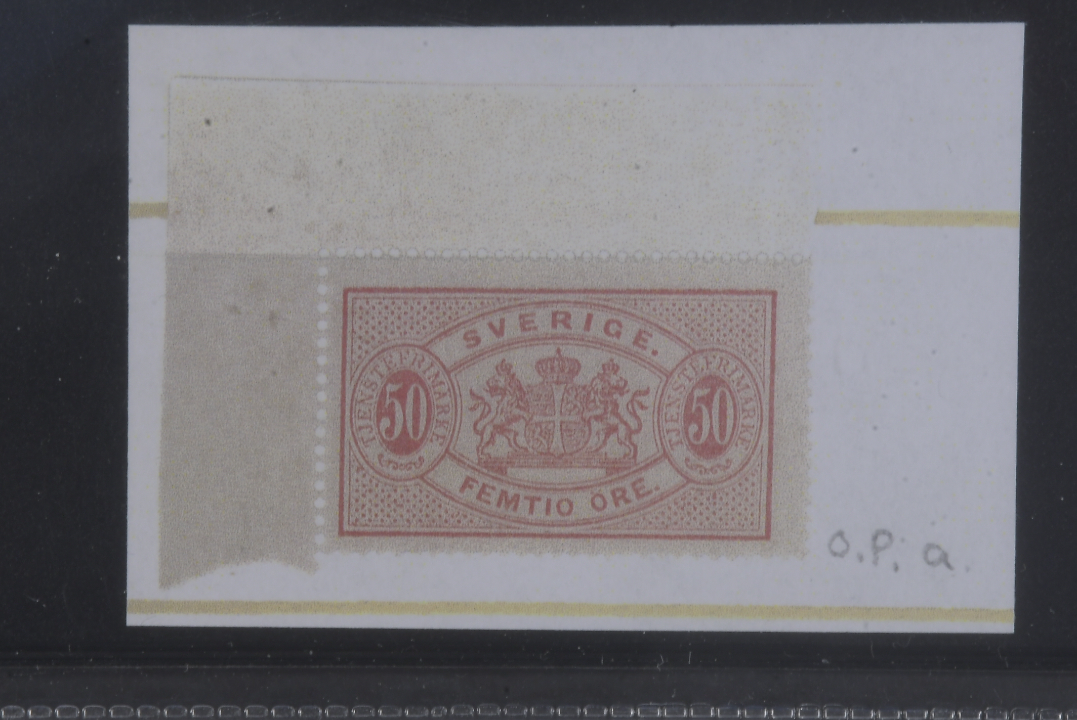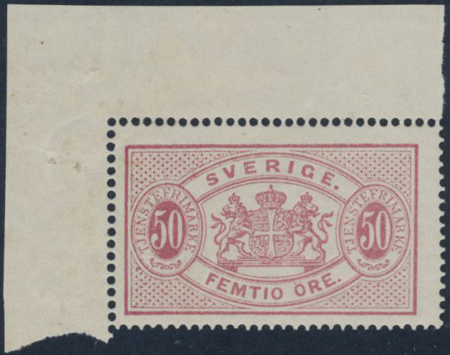 Sweden. Official Facit Tj9a ★, 50 öre violetish carmine, perf 14, blue-greyish paper. Opinion (shade) by O.P. SEK 5000