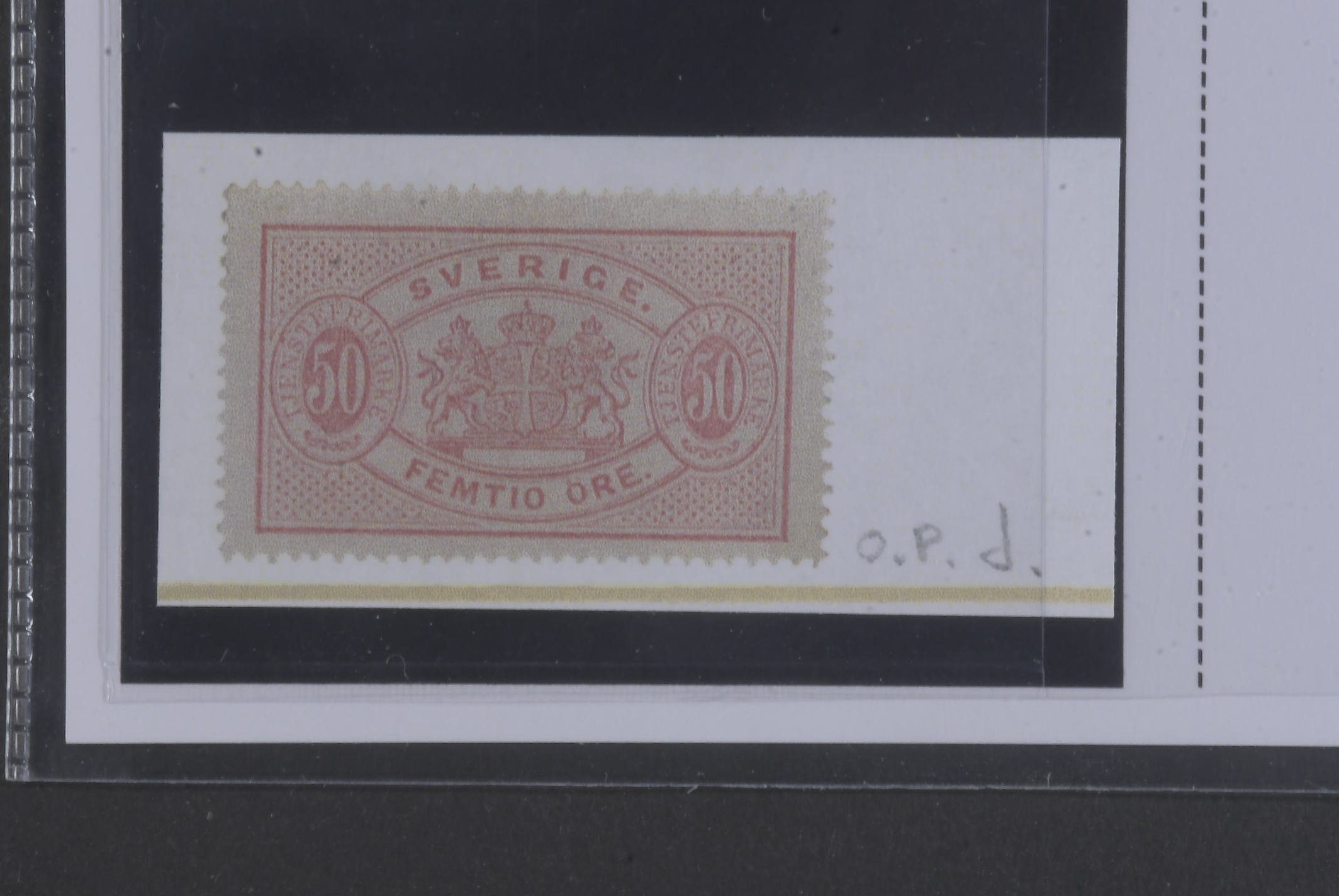 Sweden. Official Facit Tj9d ★, 50 öre carmine-rose, perf 14, yellowish paper. Opinion (shade) by O.P. SEK 5500