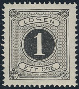 Sweden. Postage due Facit L1 ★★, 1 öre black, perf 14. Superb–EXCELLENT. SEK 3500