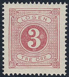 Sweden. Postage due Facit L2a ★★, 3 öre carmine, perf 14. Superb. SEK 3500