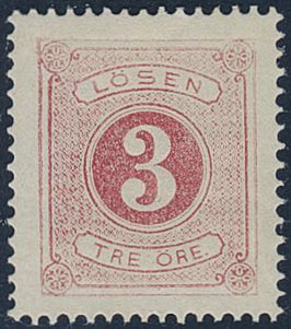 Sweden. Postage due Facit L2a ★, 3 öre carmine, perf 14. EXCELLENT centering. Opinion (shade) by O.P. SEK 1200