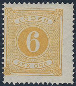 Sweden. Postage due Facit L4b ★★, 6 öre yellow, perf 14. Opinion (shade) by O.P. SEK 3500
