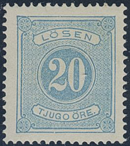 Sweden. Postage due Facit L6b ★, 20 öre greenish blue, perf 14. Superb. Opinion (shade) by O.P. SEK 1300