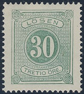 Sweden. Postage due Facit L8c ★, 30 öre dark green, perf 14. Superb. Opinion (shade) by O.P. SEK 1400