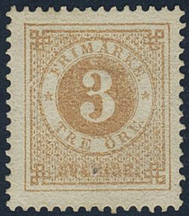 Sweden. Facit 28b ★, 3 öre dull orange-brown. Superb.