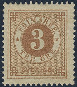 Sweden. Facit 28d ★, 3 öre yellow-brown. Opinion (shade) by O.P. SEK 1200