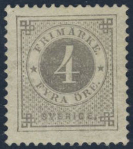 Sweden. Facit 29e ★, 4 öre deep grey-grey on calendered paper. Superb centering. Opinion (shade) by O.P. SEK 2500