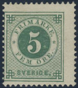 Sweden. Facit 30c ★, 5 öre green, rich smooth print. Opinion (shade) by O.P. SEK 2000