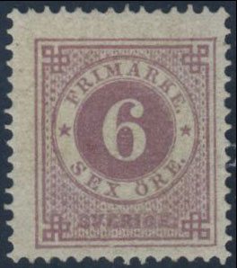 Sweden. Facit 31a ★, 6 öre red-lilac. Scarce shade. Opinion (shade) by O.P. SEK 4000
