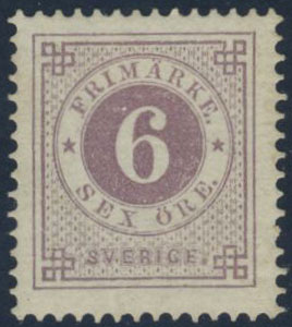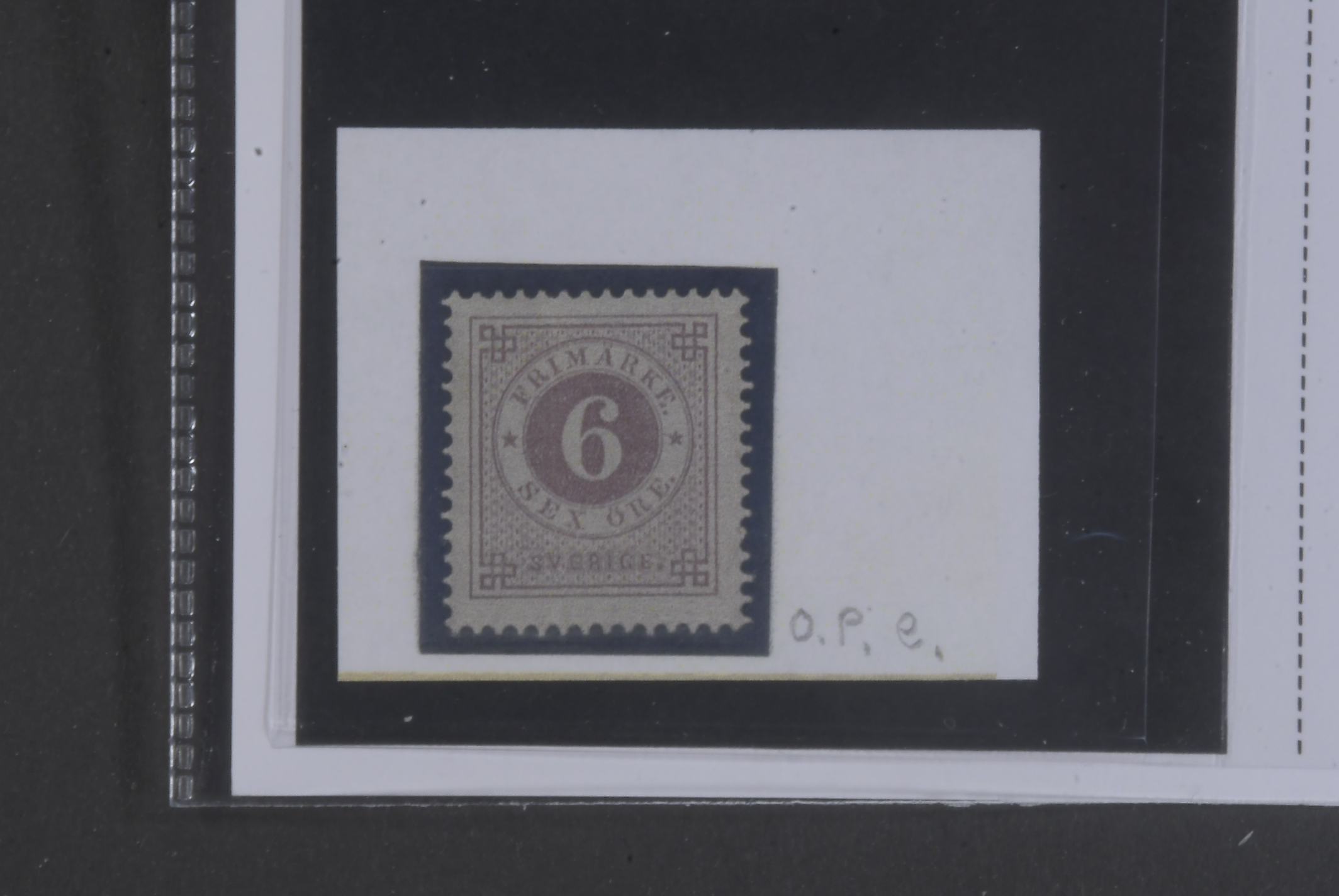 Sweden. Facit 31e ★, 6 öre greyish lilac. Weak natural paper fold. Opinion (shade) by O.P. SEK 2500