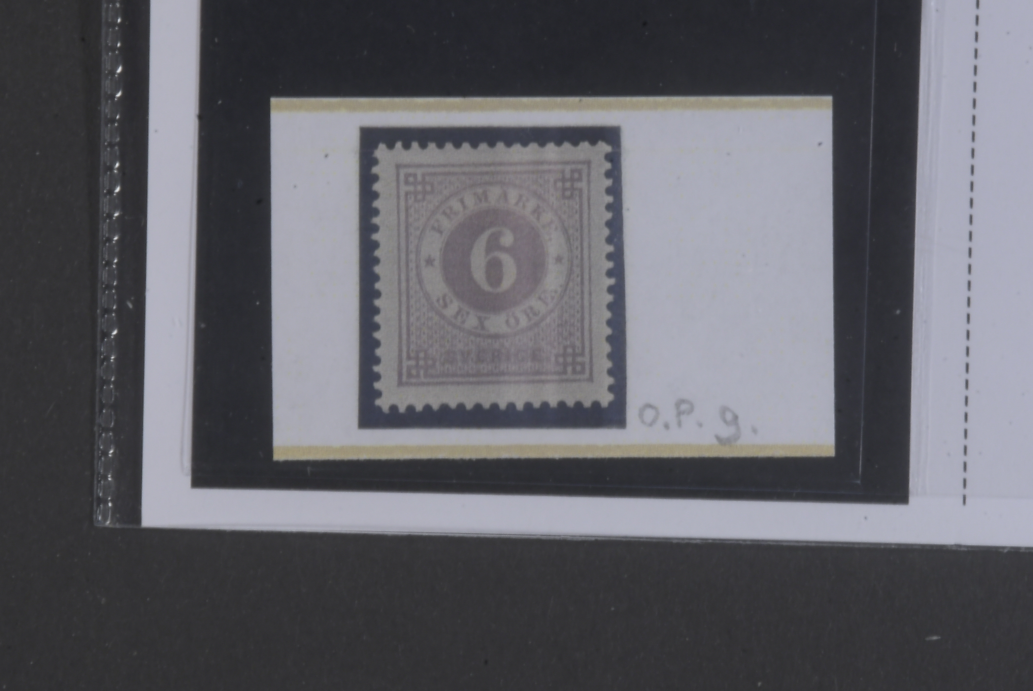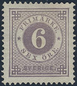 Sweden. Facit 31g (★), 6 öre bluish lilac on white paper. Superb centering. Opinion (shade) by O.P.