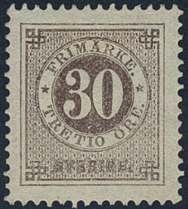 Sweden. Facit 35a (★), 30 öre brown. Superb centering. Opinion (shade) by O.P.